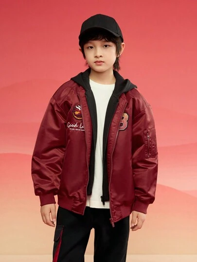 Balabala 男童飞行员夹克,防水外套,适合2025年春节新年 - 紅黑 - 查看 1
