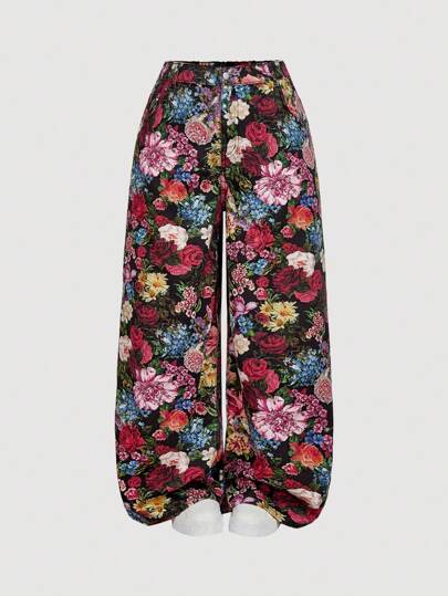 SHEIN MOD 大码花卉印花阔腿休闲牛仔裤、返校季、女装秋季、度假女装、返校季服装、校服、图案裤、优雅女装牛仔裤、乡村音乐会、女装西部风、复古牛仔裤、女装阔腿裤、Y2k 女装、女装早午餐、趣味牛仔裤、复古风女装、约会之夜女装、外出裤装、返校季女装、女装复古服装 - 紅色 - 查看 1