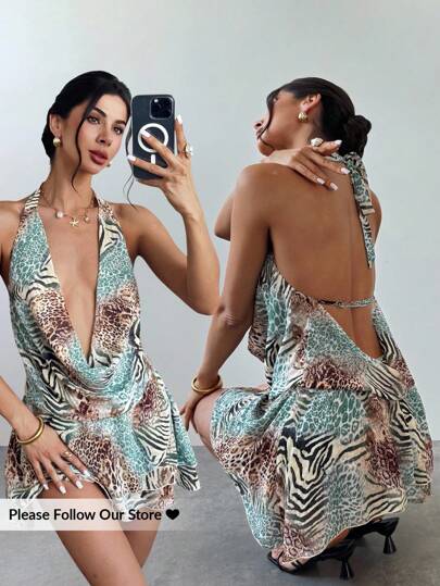 Firerie 女士新款优雅露背吊带豹纹连衣裙,节日时尚/7 月 4 日服装/六月节服装/海滩度假服装/夏季服装/毕业服装/茶会服装/优雅露背/女士沙滩装/沙滩裙/鼠尾草绿色连衣裙/ - 彩色 - 查看 6