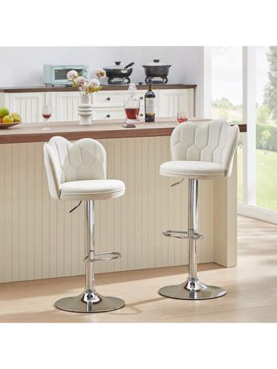 Bar Stools Set Of 2, Adjustable Barstools With Back, Velvet Armless Counter Height Stool Kitchen Island Stool Swivel Bar Stools, White - 白色 - 查看 1