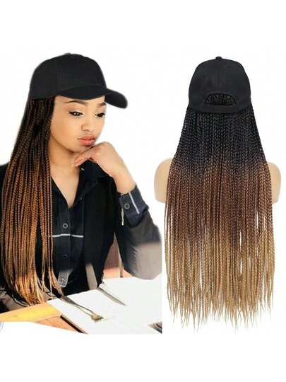 棒球帽假发 24 英寸盒状辫子接发带帽子渐变色合成发帽假发带长辫子发女士 - 彩色 - 查看 1