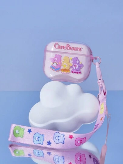 SHEIN X Care Bears 带挂饰的熊图案可爱耳机盒,礼物 - 粉色 - 查看 1