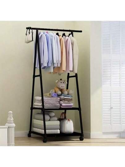 卧室:晚上睡觉放衣服床头简易晾衣架衣帽架落地衣架三角折叠架 - 彩色 - 查看 1