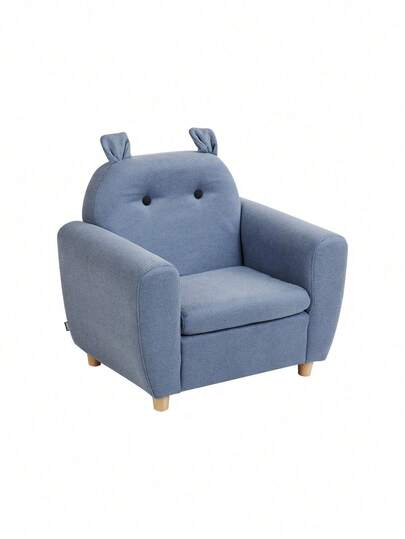 Beliani 兒童扶手椅亞麻外觀藍色動物形狀河馬 MARIBO