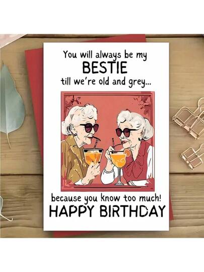 带信封的最好朋友生日贺卡,“直到我们变老,你永远是我最好的朋友”送给最好朋友的生日礼物,(12厘米/4.7英寸x17厘米/6.7英寸),友谊卡,生日贺卡 - 彩色 - 查看 12
