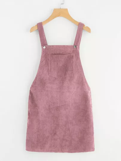 SHEIN 前口袋吊帶連身裙 - 藕粉色 - 查看 1