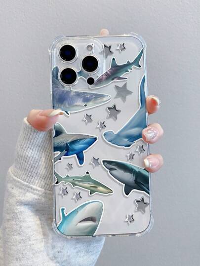Shark Species Pattern Quadrant Anti-Drop Design Stylish Phone Case For 15/15promax/Phone 15pro/Phone 16/16pro/16promax /13/13pro/13promax/14/12/11/X/XS/XS MAX,Galaxy A50/A35/A10/A14/A15/A16 Galaxy S24/S24 Plus/S24 UlTRA/Galaxy S23/S23 +/S22 Ect. Built-In Shock Absorption And Anti-Drop Function, Fully Encased Around The Edges, Transparent And Minimalist. Suitable For MOTOG30/G20/G10/G524G/G825G/G71S Features Include Simple Japanese-Style Design, Cartoonish Girl Style, As Well As   Anti-Drop Protective Cases. Featuring A Minimalist Japanese-Style Design, Cartoonish Girlish Style, And Shock-Proof Protection. - 無色 - 查看 2