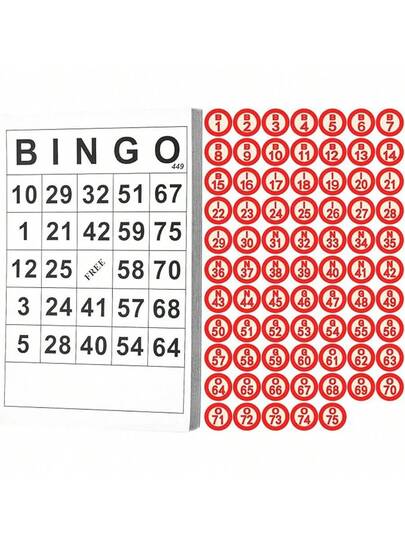 宾果棋盘游戏套装包括经典的 40 张宾果数字卡和 75 副棋子,适合家庭、大型聚会、成人节日活动 - 彩色 - 查看 1