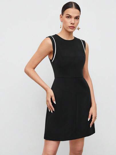 BizChic 撞色滾邊A字連衣裙 - 黑色 - 查看 1