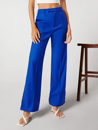 BizChic 高腰接縫細節斜插口袋長褲工作服