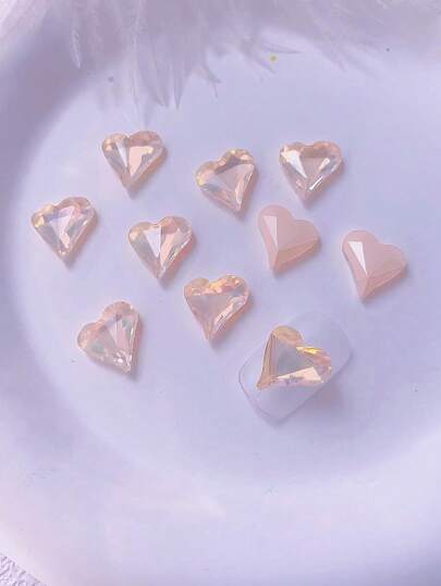 10 件装心形美甲装饰 DIY 指甲饰品 指甲宝石 美甲用品 - 橘色 - 查看 1