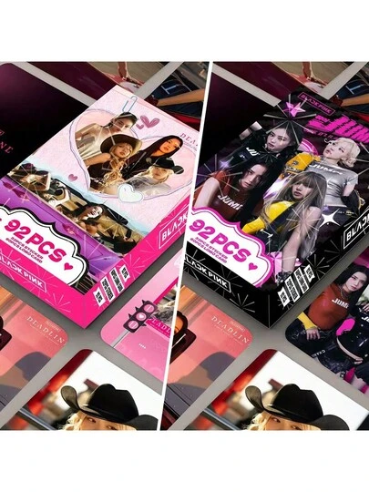 黑粉色高级收藏品交易卡 | 限量版 OT4 套装 | 截止日期完好无损 | 稀有 KPOP 纪念品世界巡回版 KPOP 周边交易卡粉丝收藏黑粉色 124 张激光卡(含 64 张贴纸)LOMO 卡