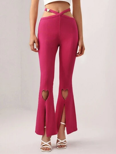 Blank 设计师女士露腰开叉喇叭腿牛仔牛仔裤,秋季,适合秋冬季、假日、春夏季、节日 - 玫紅色 - 查看 5
