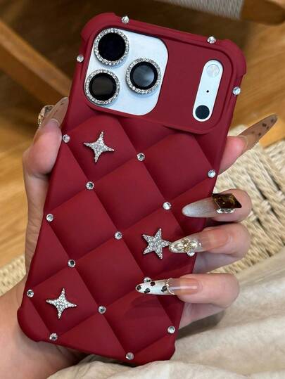 适用于 17 Pro Max 16e 173 15 14 13 Pro Max 的闪亮水钻星星手机壳,菱格纹防震保护套