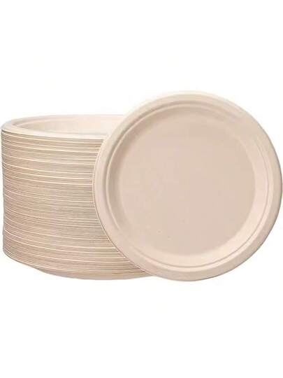 Blipack 100 Large  Sugarcane Plates 22cm  Compostable - 杏色 - 查看 5
