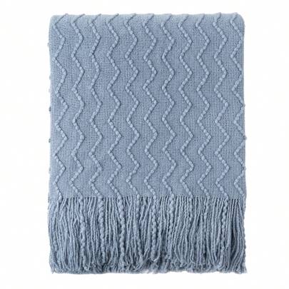 Bluish Grey Throw Blanket For Couch, Textured Knit Throw, Boho Blankets And Throws For Sofa Bed Living Room Decor, Outdoor Throw Blanket, 50"X60"