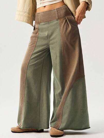 Bohemela 女式休闲针织拼接宽松阔腿裤 - 彩色 - 查看 1