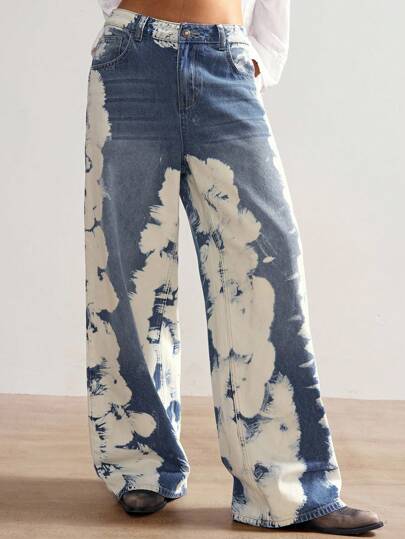 Bohemela 女式扎染图案口袋宽腿宽松休闲牛仔裤