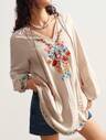 Bohemela 加大码花卉印花镂空刺绣灯笼袖衬衫,休闲度假装