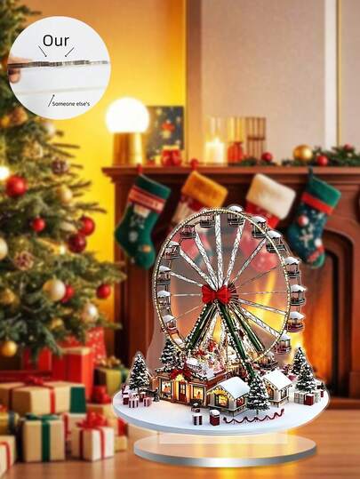 波西米亚风格亚克力圣诞摩天轮装饰标志和牌匾 - 多用途桌面建筑主题装饰,适用于家庭、办公桌、卧室、咖啡厅 - 节日礼物、艺术桌面装饰(1 件装)