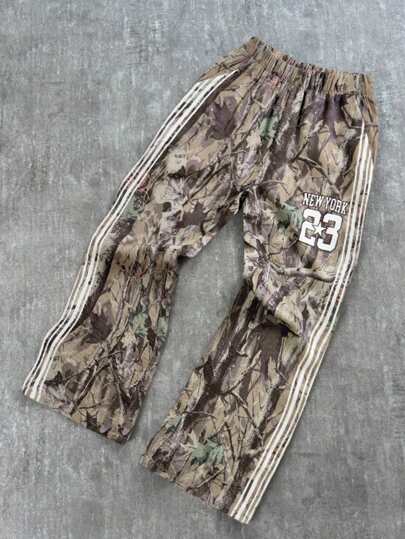 儿童/青少年男童休闲百搭舒适印花图案宽松直筒梭织长裤 - 彩色 - 查看 1