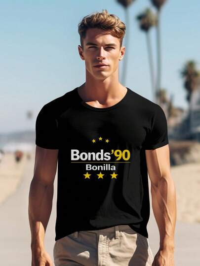 Bonds '90 Bonilla T-Shirt - Classic 90s Baseball Tee, Retro Sports Fan Apparel, 220g Cotton Comfort Fit, Vintage Style Graphic Tee For Men Women, Black With Gold Accents 0001