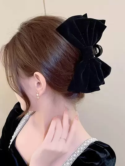 蝴蝶结装饰发夹,适合女孩日常发型休闲可爱蝴蝶结、发饰、爪夹、发夹、发夹,秋冬度假装束发夹,女士 - 黑色 - 查看 1