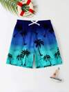 青少年男童时尚宽松印花沙滩短裤,适合夏季、海滩、户外活动、游泳
