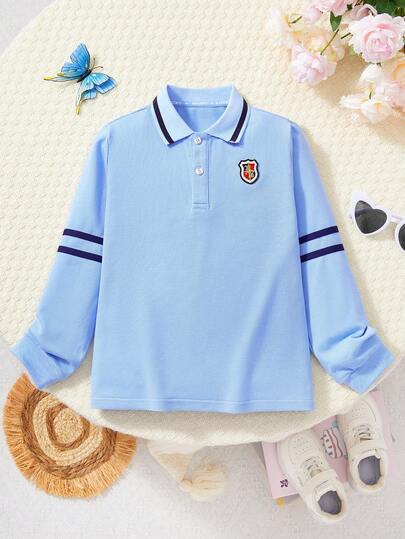 男童Polo衫,英伦风休闲长袖T恤,宽松版型,儿童春秋季新品 - 淺藍色 - 查看 1