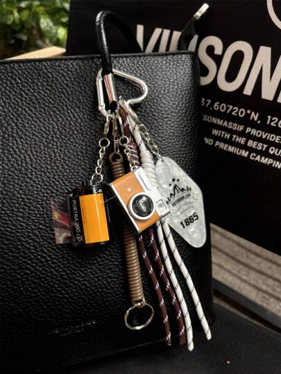 彩色编织绳汽车钥匙链,配有复古迷你相机和胶卷轴吊坠,台球主题装饰吊坠,适用于女士包包、手链、背包装饰钥匙链 - 彩色 - 查看 1