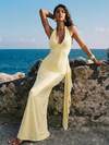 Nevyona 女士深V领紧身弹力收腰连衣裙,奶油黄色莲花连衣裙,性感、时尚、优雅,春夏连衣裙,立体花朵装饰,缎带设计,时尚优雅,适合日常穿着、婚礼、宴会、通勤、毕业派对、节日活动、度假等场合。
