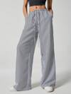 SHEIN 复古运动条纹套装,迷你蝴蝶结装饰,青少年女孩休闲简约黑色和奶油白色条纹宽松圆领短袖 T 恤和喇叭裤两件套服装,适合夏季