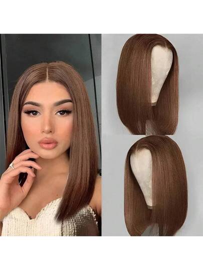 巴西雷米假发 4# 巧克力棕色直发短鲍勃假发真人发棕色 13x4 透明蕾丝前部真人发假发 180% 密度 - S4 - 查看 1
