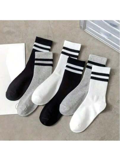透气运动袜条纹中筒袜吸汗柔软百搭休闲中筒袜2/6/12/30双 - 彩色 - 查看 1