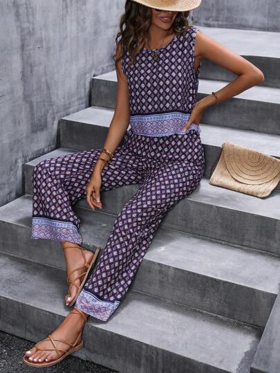 Breezaya 滿版印花背心上衣和闊腿褲