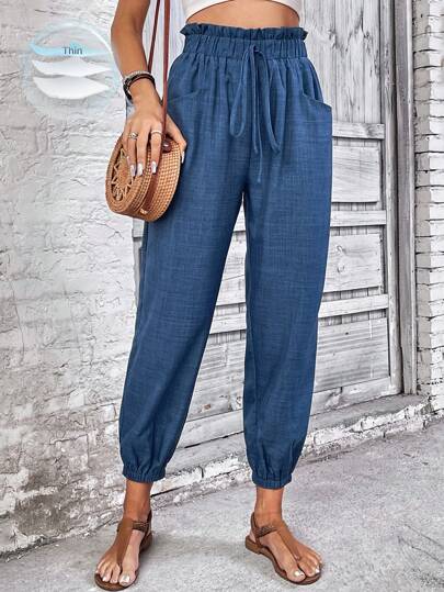 EMERY ROSE 紙袋腰束腰口袋束口褲 - 藍色 - 查看 1
