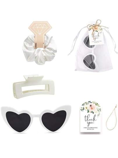 伴娘求婚礼品套装,包含方形弹性发夹和单身女郎心形眼镜,婚礼单身派对用品,情人节、母亲节、友情礼物 - 如圖 - 查看 1