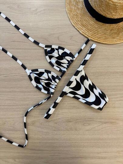 Bronze Tape Bikini, Thong Bottom, No Padding, Lined, Tropical Sensual Beach Summer Small Printed Plain Two-Tone
