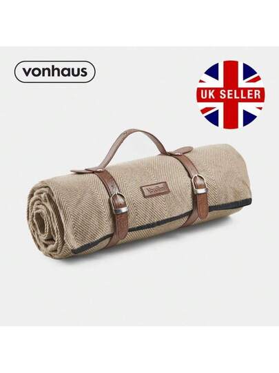 Brown Herringbone Waterproof Picnic Blanket - 棕色 - 查看 1