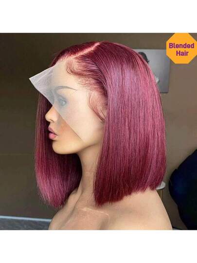 勃艮第直发鲍勃假发 200% 密度 13x4 高清耳到耳蕾丝前假发 女士透明 13*4 蕾丝前假发 预拔预漂白结 耐热纤维合成混合人发混合假发带婴儿头发 红色 99j 8-36 英寸 适合日常、派对和万圣节角色扮演