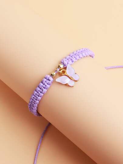 蝴蝶墜飾編織手鏈 - 紫色 - 查看 1