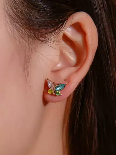 蝴蝶設計鉚釘耳環 - 彩色 - 查看 1