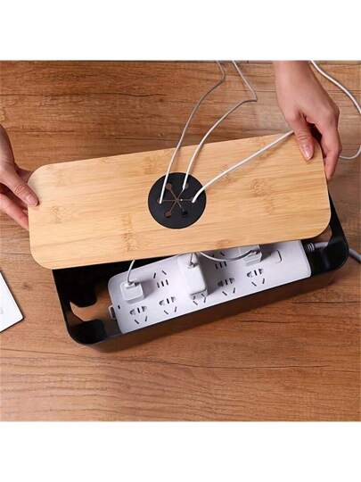 木质线材收纳盒电源线收纳盒防尘充电器插座整理器线盒家用绕线器整理器 - 多色 - 查看 1