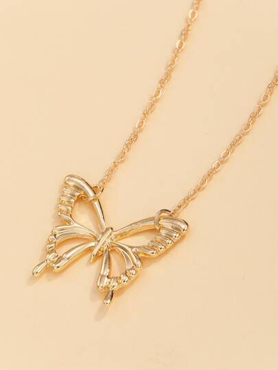 蝴蝶吊墜項鍊 - 金黃色 - 查看 1