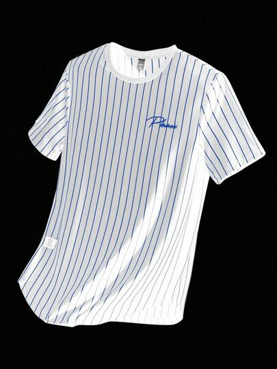 NEON BLANC 男士夏季字母条纹短袖针织圆领休闲T恤 - 藍白色 - 查看 1