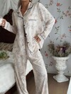 女士两件套开襟V领睡衣套装,长袖上衣和长裤,亲肤家居服,适合春秋季穿着,两件套,秋季服装,清爽浅蓝色
