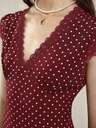 Cévolie 女士波尔卡圆点印花重叠V领泡泡袖优雅连衣裙