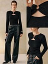 Cévolie 女士优雅通勤纯色蕾丝花边喇叭袖衬衫