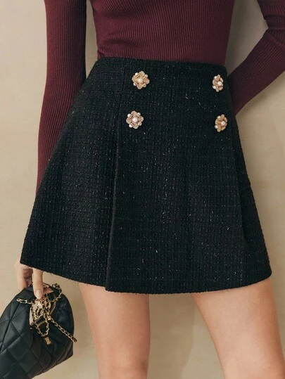 Cévolie 优雅通勤水钻装饰裙,秋冬 - 黑色 - 查看 1