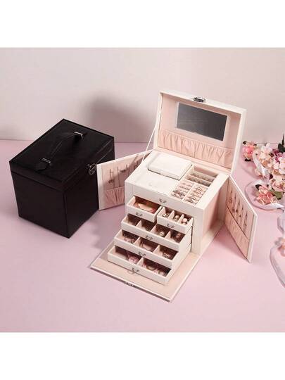 CASEGRACE 1 件多层珠宝盒,带抽屉的珠宝收纳盒,带镜子的珠宝收纳架,珠宝收纳盒,适用于戒指耳环项链手链手表女士收纳整理器旅行必需品返校宿舍收纳 - 彩色 - 查看 1